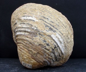 Bivalvo del Cretácico inferior de Jumilla, con ornamentación en base a costillas concéntricas
