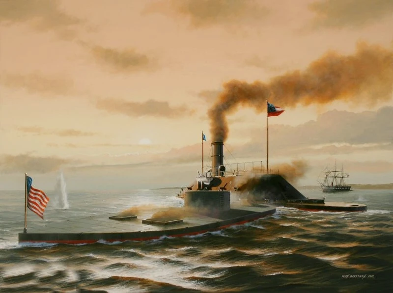 La batalla de Hampton Roads, popularmente conocida como "batalla del Monitory el Merrimac", fue una batalla naval de la Guerra de Secesión estadounidense que tuvo lugar el 9 de marzo de 1862 frente a Sewell's Point, un promontorio cercano a la boca del canal de Hampton Roads (Virginia), siendo esta boca la única salida de las aguas interiores que alimentan el canal a la bahía de Chesapeake y a mar abierto.- .......................................................................:https://es.wikipedia.org/w/index.php?title=Especial:Libro&bookcmd=download&collection_id=90d94142cd0548248f22d6a25a4de233efdc9303&writer=rdf2latex&return_to=Batalla+de+Hampton+Roads