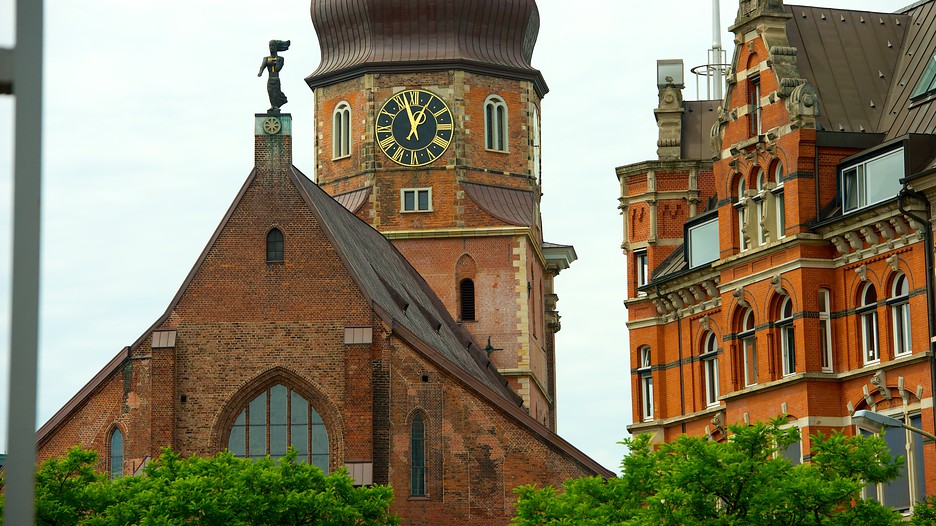 La atestiguación más antigua de la existencia de la iglesia se remonta a 1256. El cuerpo principal, que consiste en una triple nave, fue reconstruida a mediados del siglo XV en el estilo gótico báltico del norte de Alemania. En 1657 se añadió al chapitel un tejado barroco, que alcanzó una altura de 115 metros. La iglesia resultó gravemente dañada en los ataques aéreos durante la Segunda Guerra Mundial, el 30 de julio de 1943. Solo quedaron en pie los muros exteriores y la base del chapitel. Fue restaurada entre 1950 y 1957.2