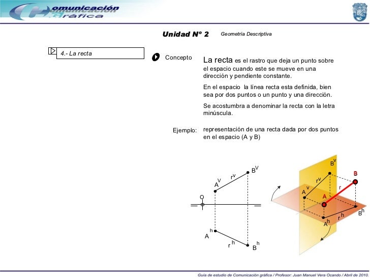 Según la posición de la recta con respectos a los planos de proyección (horizontal, vertical o frontal y de perfil) esta p...