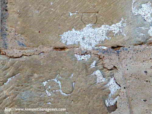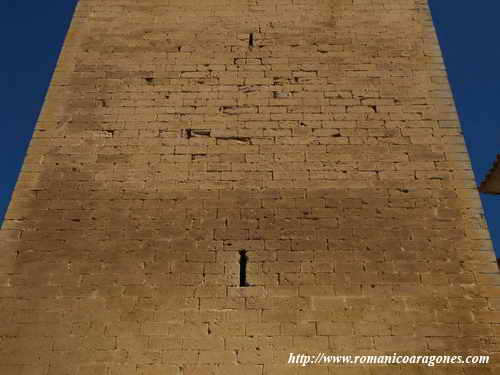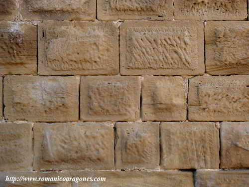 Las imágenes 9 a 12 son una muestra del lienzo del torreón islámico que se halla integrado en el lienzo que rodea el castillo por el lado oeste. Fue en origen lienzo oeste de una torre islámica, y se advierte en su ángulo sudoeste la disposición adarajada de los sillares para articularse con los del lienzo contiguo.La cuidada elaboración de los listeles y del almohadillado de las caras vistas; así como el alisado minucioso de las caras de asiento, lo relacionan con otros como el de Tormos, San Mitiel o la propia muralla de Huesca (Siglo IX-X).En los muros del palacio barroco, hay algunos sillares con marcas de cantería, reutilizados de edificaciones anteriores (Imagen 13).