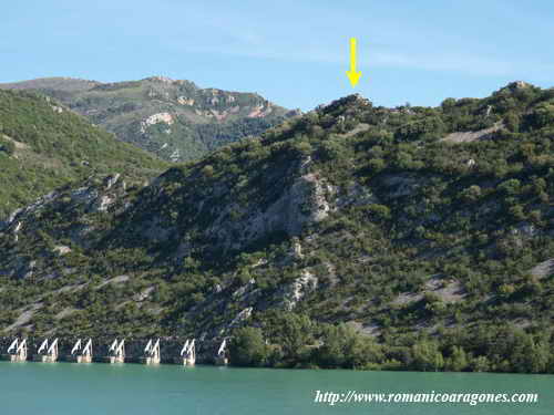 El castillo de Cacabiello se encuentra próximo a Santa María de la Peña. Podemos verlo en lo alto del risco que perfila el horizonte sobre el extremo oeste de las compuertas del pantano (Imagen 1: flecha amarilla). Desde su privilegiada posición dominaba visualmente el desfiladero que el Gállego abre en la sierra buscando la tierra llana una vez rebasado el portillón flanqueado por los mallos de Riglos y los de Agüero respectivamente.Su origen se remonta a los tiempos de Sancho III El Mayor y se documenta su senyor entre 1033 y 1035: Ariol Sánchez.El acceso, según refiere Adolfo Castán en su libro "Torres y Castillos del Altoaragón" del que obtengo datos concretos y la planta , es escarpado y penoso, arrancando de encima de las compuertas del pantano. Las imágenes que muestro están obtenidas desde la orilla opuesta, con teleobjetivo.